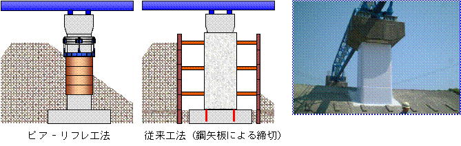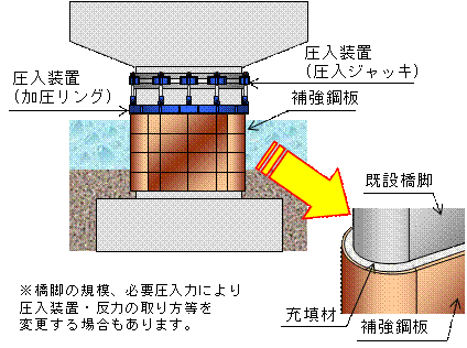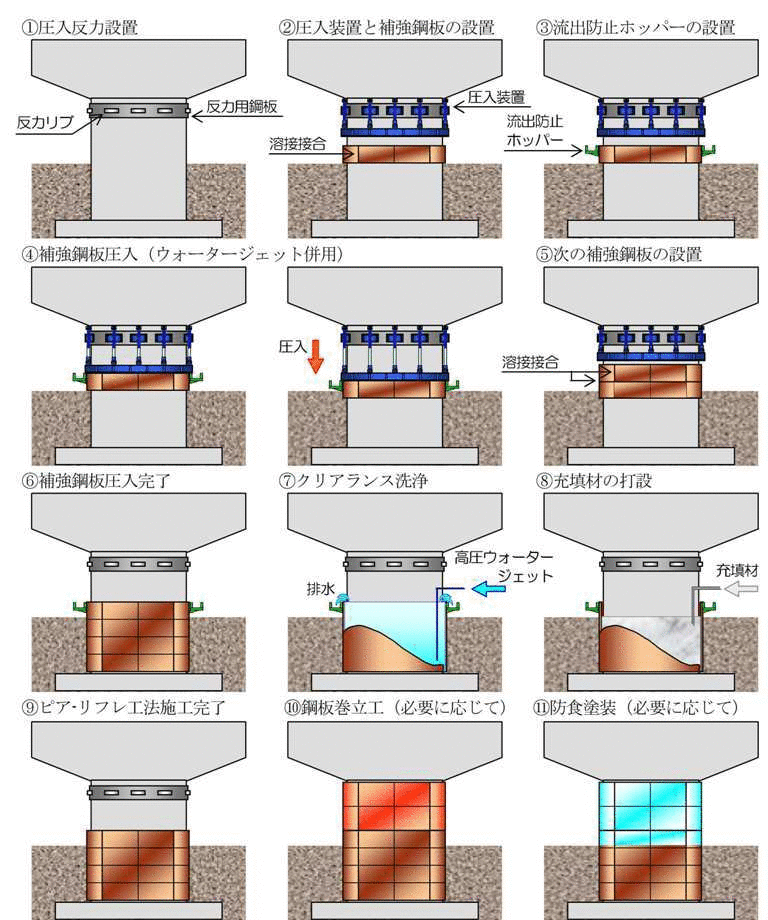 | ピア−リフレ工法 −RC(既設鉄筋コンクリート)橋脚の圧入鋼板巻き立て− |
